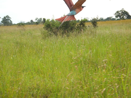 My own afternoon game drive was with a pleasant couple living in southern Holland - a Dutch lady and her English partner. Our guide was a Botswanan called Lets. We saw various birds and then encountered a group of Carmine Bee-eaters. These birds seemed interested in 'buzzing' our 4 x 4 and a number followed us for some distance, circling the moving vehicle and apparently delighting in their ability to repeatedly swoop in front of the Land Rover and emerge safely.